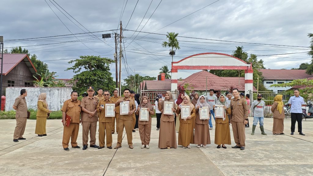 Penyerahan penghargaan dilakukan secara simbolis oleh Kasi PMD, Bapak Alpian, dan Kasi Trantib, Bapak Mahmud Hairi, kepada masing-masing penerima. Momen ini disaksikan langsung oleh seluruh peserta apel yang terdiri dari pegawai kantor kecamatan dan staf teknis lainnya. Acara diakhiri dengan pemberian ucapan selamat dan sesi foto bersama sebagai bentuk penghormatan atas jasa para ASN yang telah mengabdi selama 20 tahun dengan penuh tanggung jawab.