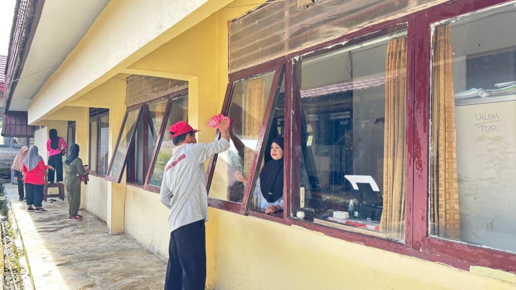 Usai apel, dilakukan pembagian tugas kepada seluruh pegawai sesuai dengan area masing-masing. Kegiatan dilanjutkan dengan pembersihan ruangan kerja, ruang pelayanan, aula, kamar mandi, ruang arsip, halaman kantor, saluran drainase, serta penataan taman dan lingkungan sekitar kantor.