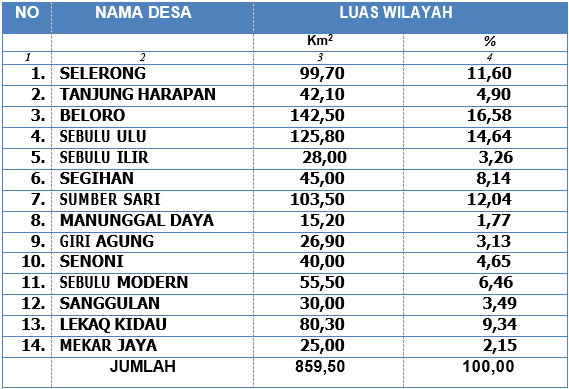 6. Luas Wilayah Menurut Kecamatan Sebulu