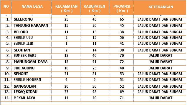 7. JARAK DARI DESA KE KECAMATAN, KABUPATEN, PROVINSI ( ORBITASI )
